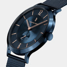 - Design intemporel : le boîtier et le cadran polis sont d'un bleu profond, avec des accents en or rose comme les index fins et les chiffres à 12 et 6, offrant un mélange parfait d'élégance moderne et intemporelle.