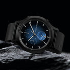 • Design with a Cosmic Touch: A genuine piece of meteorite, the black-blue lacquered dial, a matte black case with Superluminova, and an interchangeable strap make this timepiece truly distinctive.