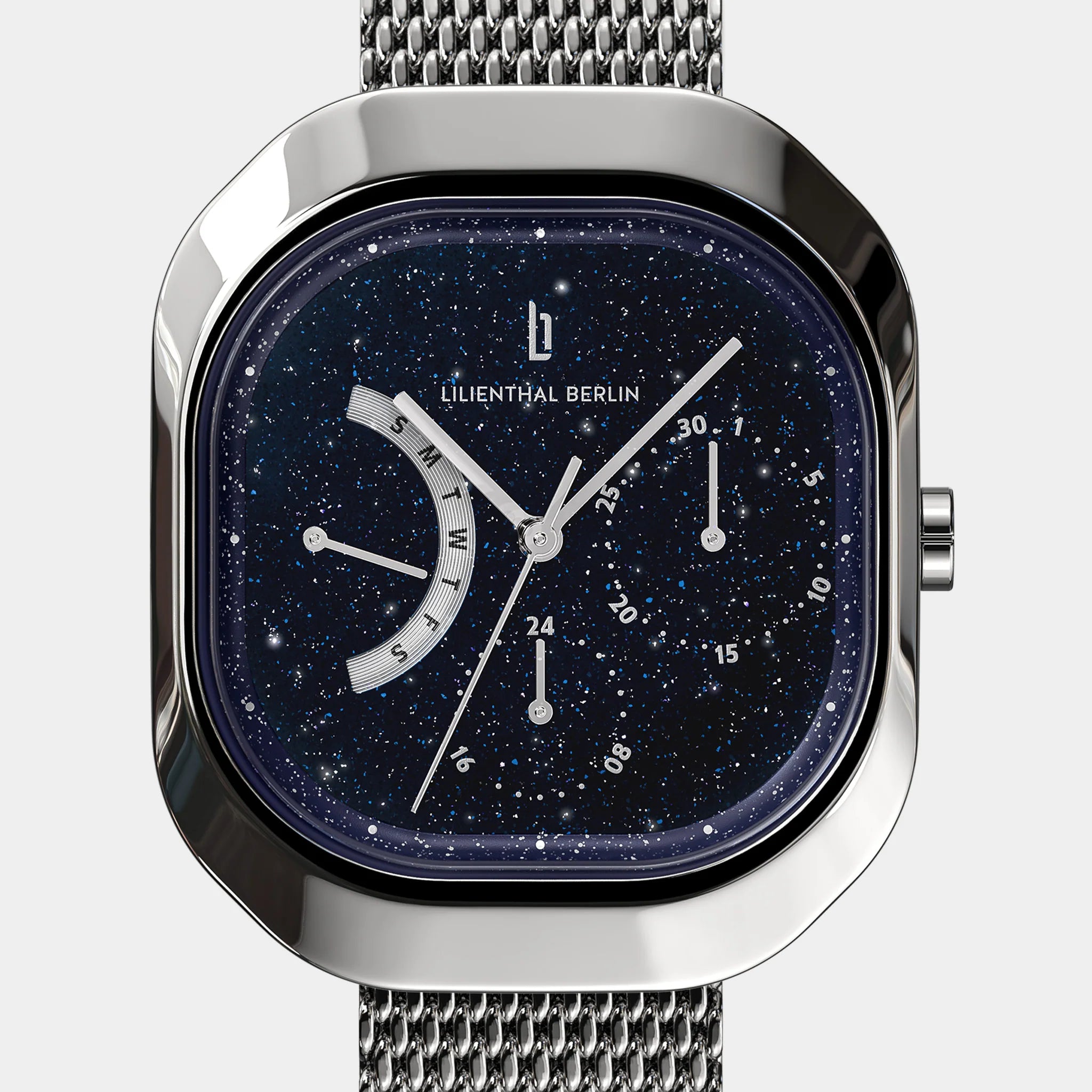 - Sophisticated Brilliance: The dial is coated with a crystalline surface, creating a lively shimmer with every movement. Featuring delicate hands, small Superluminova elements, and displays for date and weekday, it offers subtle complexity while remaining effortlessly readable.