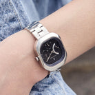 - Sculptural Elegance: A rectangular case with softly rounded edges creates a striking yet refined silhouette, making this timepiece feel like a piece of jewelry on the wrist.