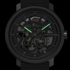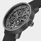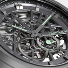 - Precision made visible: The skeletonized dial unveils the complex aesthetics of the automatic movement.
